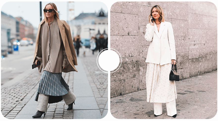 На создание образа с этим микротрендом решится не каждая. Но если ты хочешь поэкспериментировать со стилем, попробуй носить в одном образе и брюки, и юбку.