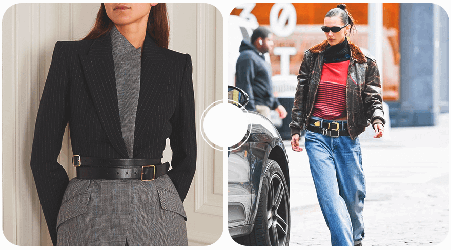 Самый оптимальный вариант — носить два или больше ремня с классическим пиджаком. Так ты сможешь дополнительно подчеркнуть линию талии и сделать фигуру более женственной.