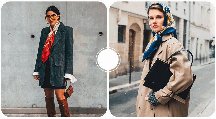 Этот аксессуар хоть и не согреет в холода, но позволит сделать демисезонный образ более женственным и элегантным. В тренде и однотонные шелковые платки, и модели, украшенные яркими принтами. Например, анималистичным, цветочным или абстрактным.