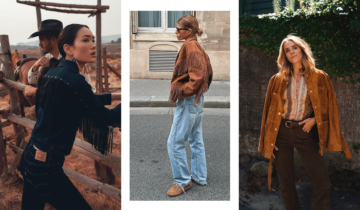 Одежда и аксессуары в стиле Дикого Запада — еще один тренд осени – 2024. Тут и ковбойские шляпы, и сапоги со шпорами, и куртки с бахромой. Не менее актуальны ремни с акцентными пряжками, кожаные жилетки и джинсы-трубы.