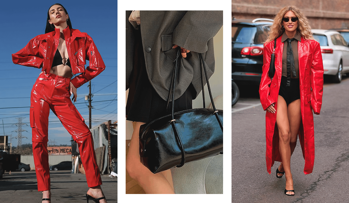 Еще один тренд для самых смелых — лаковая кожа. Это может быть укороченная юбка, сапоги, сумка или длинный плащ. Блестящая одежда и аксессуары сделают любой образ более ярким и сложным. Особенно если использовать цветные кожаные вещи.