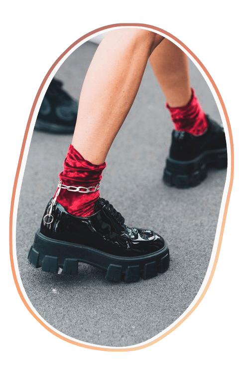 Массивные или классические лоферы или дерби хорошо сочетаются с джинсами и классическими брюками. Носить обувь стилисты рекомендуют либо с высокими носками – подойдут и классические черные, и яркие модели, либо на босую ногу.