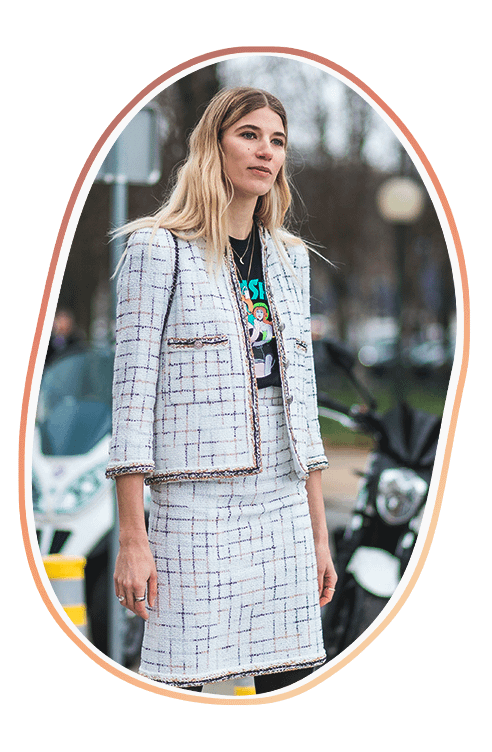 Шерстяная ткань с традиционным плетением – классика стиля. Одежда из твида уже несколько раз возвращалась на модные подиумы и с каждым разом завоевывала все больше любви и внимания. Этой весной особенно популярны будут классические укороченные и удлиненные твидовые жакеты и костюмы-двойки с прямой юбкой. Актуальны будут как классическая черно-белая, так и яркие вариации твида. Особенно стилисты рекомендуют присмотреться с нежному розовому, голубому и зеленому цветам.