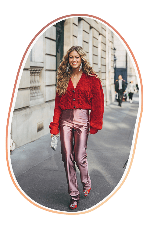 Образы, составленные с использованием ярких цветов – один из главных трендов этого и грядущего сезонов. Особенно актуально сочетание ярких классических или кожаных брюк с укороченными цветными кардиганами. Немного инфантильный, но при этом сдержанный образ удачно подойдет для прогулки с подругами и для свидания в уютном кафе.