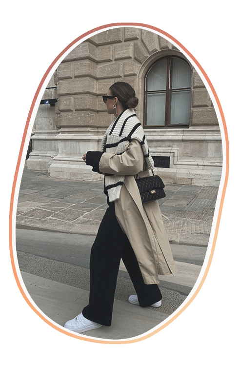 Чтобы составить базовый гардероб в таком стиле, тебе понадобятся самые простые и универсальные вещи. Если хочешь выглядеть стильно, к весне успей приобрести свободный брючный костюм, базовую водолазку, однотонные футболки, классический тренч или удлиненное пальто. А контраста и завершенности образу придадут стильные детали: кольца, головной убор, очки или акцентная сумка.