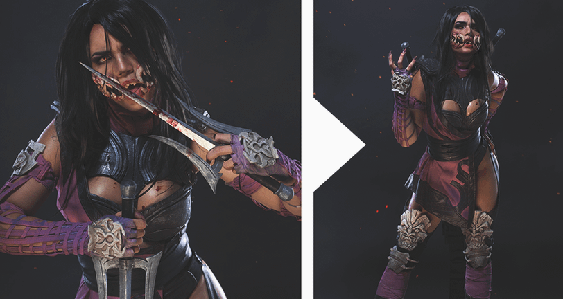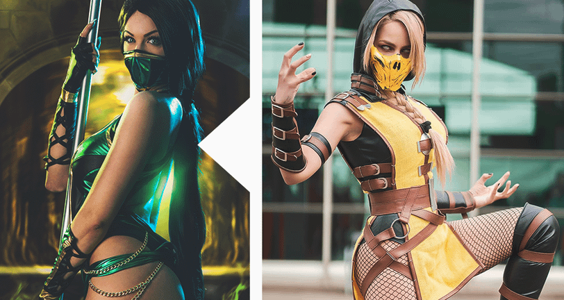 Каких только персонажей не было в игре: полицейская Соня Блэйд, владычица ада Синдел, куноичи Скарлет. Да, почти во всех частях их образы были сексуализированы донельзя, так что рекомендуем вдохновляться стилистикой MK 11: здесь женщины выглядят, словно живые люди, а не влажные фантазии разработчиков. Больше всего под тематику Хэллоуина с масочным режимом подойдут костюмы Милины и Китаны — дочерей главного антагониста Шао Кана. Потребуются цветные маски из сатина или кожи, а также боди, перчатки и высокие сапоги. Образ первой девушки можно дополнить игрушечными саями — японскими орудиями ближнего боя, второй же подойдут веера.