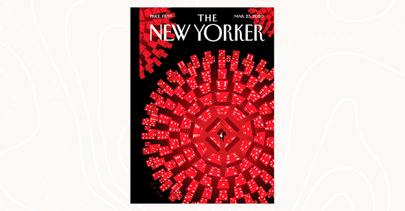 Нью-йоркское издание посвятило проблеме распространения коронавируса целых 2 обложки: за 23 и за 30 марта. На первой иллюстратор Кристоф Ниманн изобразил вирус в виде домино: если люди не будут следить за своим здоровьем, могут пострадать их близкие. Вторая, подготовленная Эриком Друкером, посвящена изоляции: на ней изображен пустой Центральный вокзал Нью-Йорка, в нем только один человек — уборщик.