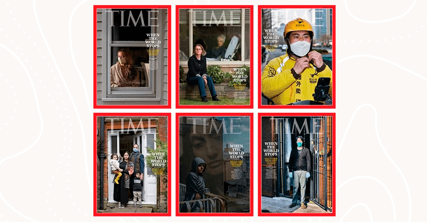 Американский еженедельный журнал тоже представил обложки, посвященные самоизоляции. На фотографиях запечатлены люди в масках, находящиеся дома.