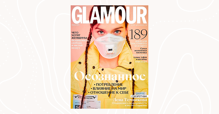Темой месяца российского издания стала осознанность. Редакторы призывают быть аккуратнее и следить за здоровьем. Для того чтобы поддержать людей на карантине, Glamour дает возможность читать электронную версию журнала бесплатно.