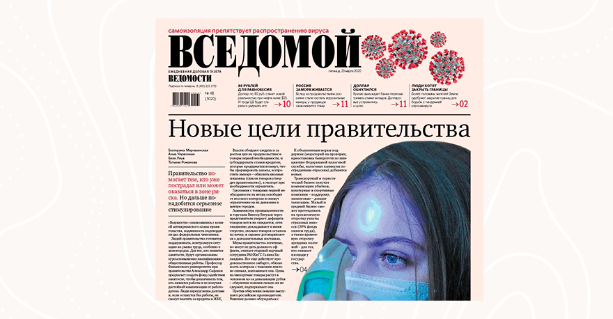 Старейшая российская газета «Ведомости» тоже не обошла стороной повестку дня: редакторы изменили логотип на «Вседомой», чтобы привлечь внимание к проблеме распространения болезни в России и в мире.