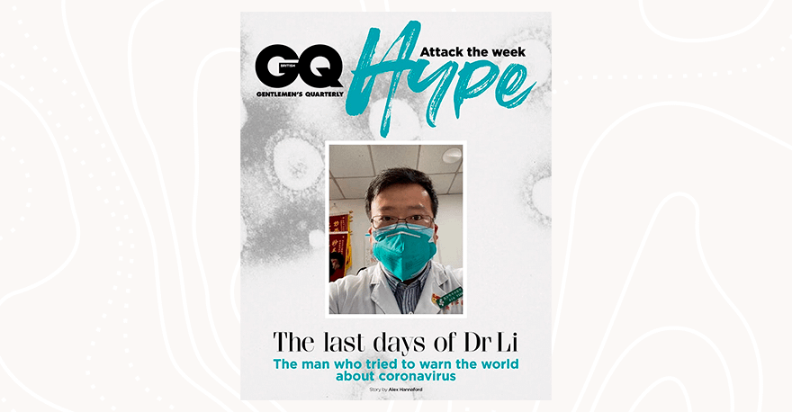 На обложке нового GQ Hype появился китайский доктор Ли Вэньлян, который первым сообщил о вспышке вируса. Позже этот вирус назвали Covid-19 или коронавирус. Ли описал инфекцию 30 декабря, но полиция предупредила его о «недопустимости распространения слухов». 10 января врач заболел коронавирусом, 7 февраля умер. Ему было всего 33 года.