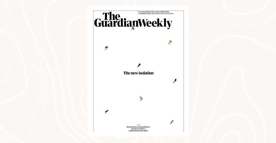 24 марта в Лондоне объявили строжайший карантин. The Guardian Weekly, который ориентируется именно на жителей столицы, посвятил обложку для номера от 27 марта самоизоляции. Для того чтобы привлечь внимание читателей, находящихся дома, редакторы подготовили материалы по экономике, биологии и другим областям. Также они составили 9-страничный гайд, в котором представлены лучшие фильмы, видеоигры, подкасты, записи концертов и театральных постановок.