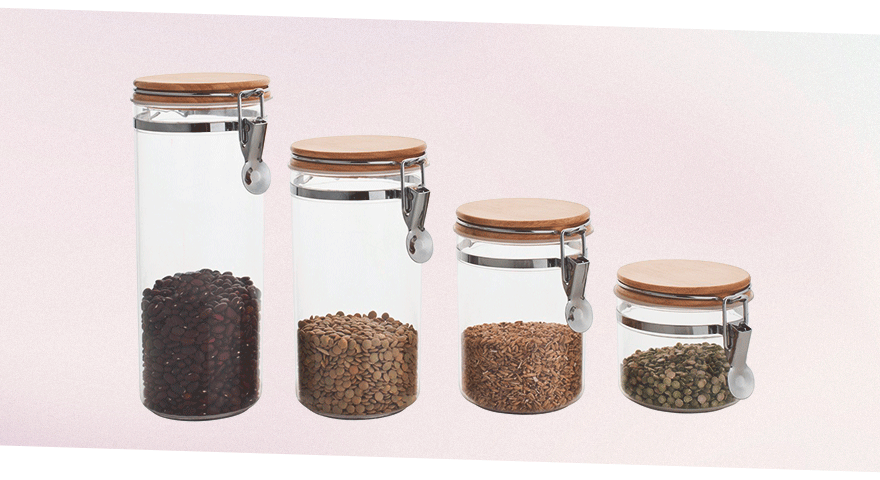В первую очередь этот совет касается сыпучих смесей вроде тех же специй, муки, круп, макарон. Возьми емкости с плоскими крышками, наполни их сухими продуктами и поставь одну на другую. Так они не будут занимать много места.