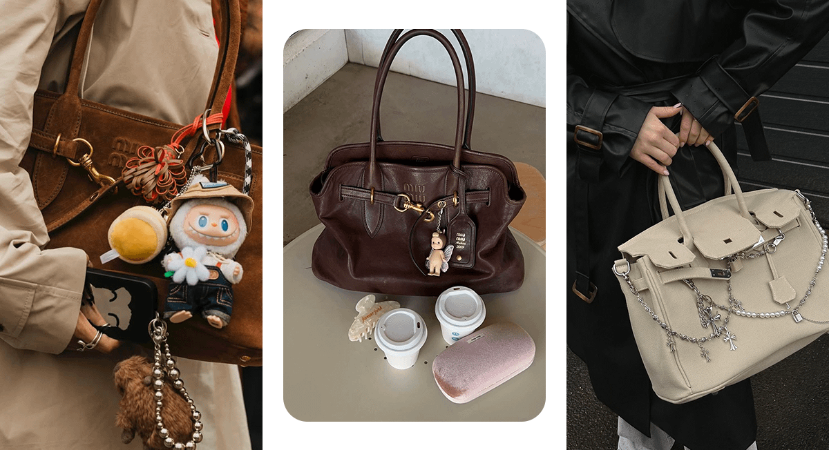 Если любишь носить сумку на плече, купи тоут с удлиненными плотными ручками. Чтобы разнообразить образ, можешь использовать яркие обвесы — бусы, брелоки, самодельные украшения. В нулевых модницы украшали тоуты даже мягкими игрушками.