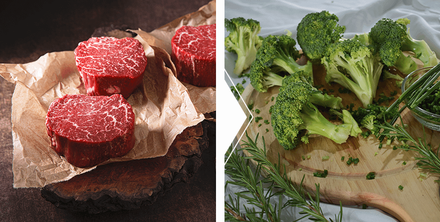 В мясе содержатся белок и железо, которые нужны организму для образования красных кровяных телец, доставляющих кислород в кровь. Брокколи является идеальным гарниром, потому что содержащийся в нем витамин С способствует лучшему усвоению вышеперечисленных микроэлементов.