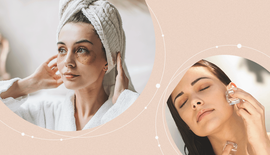 Чтобы избавиться от отечности и убрать мешки под глазами, используй холодные патчи или кубики льда. Холод простимулирует кровообращение и поможет вернуть коже тонус. Помни, что лед для охлаждения кожи можно использовать только в том случае, если на ней нет серьезных повреждений и воспалительных процессов.