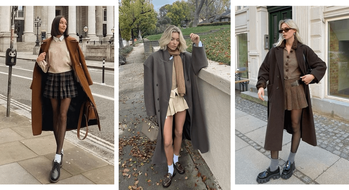 Базовое удлиненное пальто — вещь, которая обязательно должна появиться в твоем шкафу. Используй пальто, чтобы стилизовать мини-юбку и чувствовать себя комфортно в любой ситуации. Попробуй собрать образ из классического свитера, мини-юбки, темных колготок, лоферов и, конечно, пальто. Если нужно, дополнительно утеплись рубашкой и однотонными носками. Не забудь взять с собой вместительную сумку и стильный головной убор.