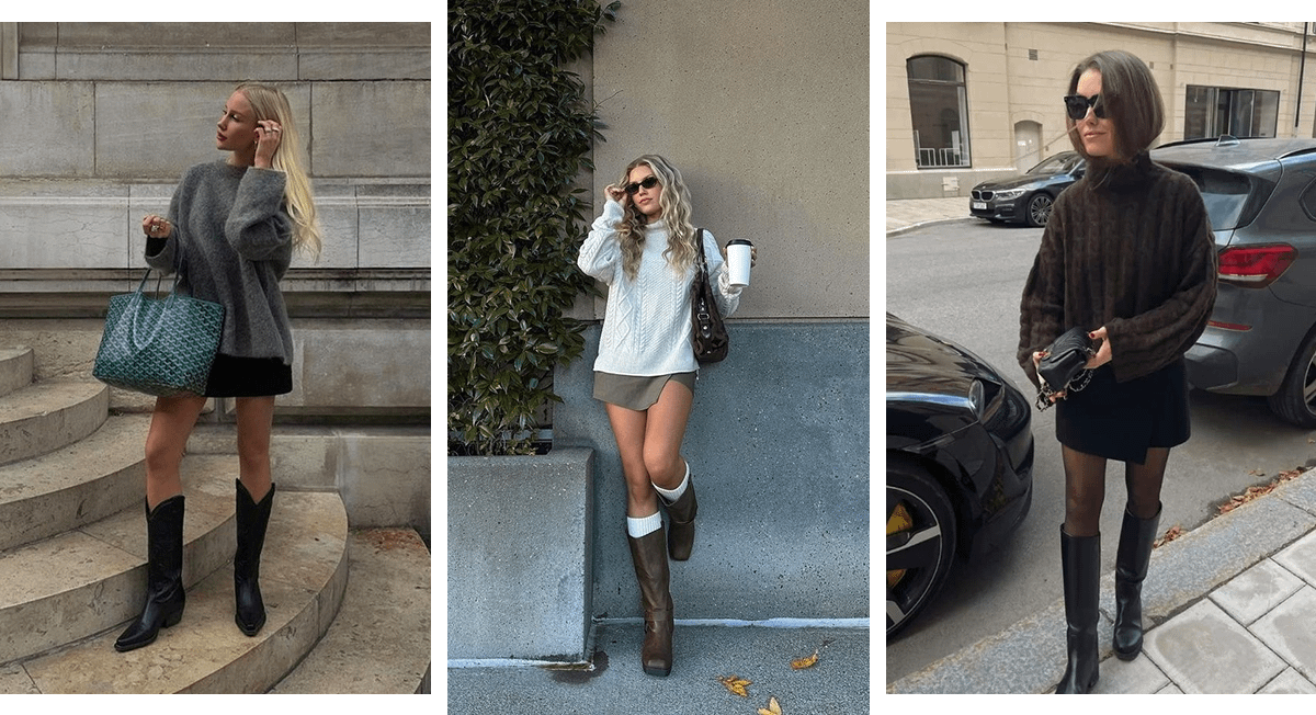 1. В образе с объемным свитером