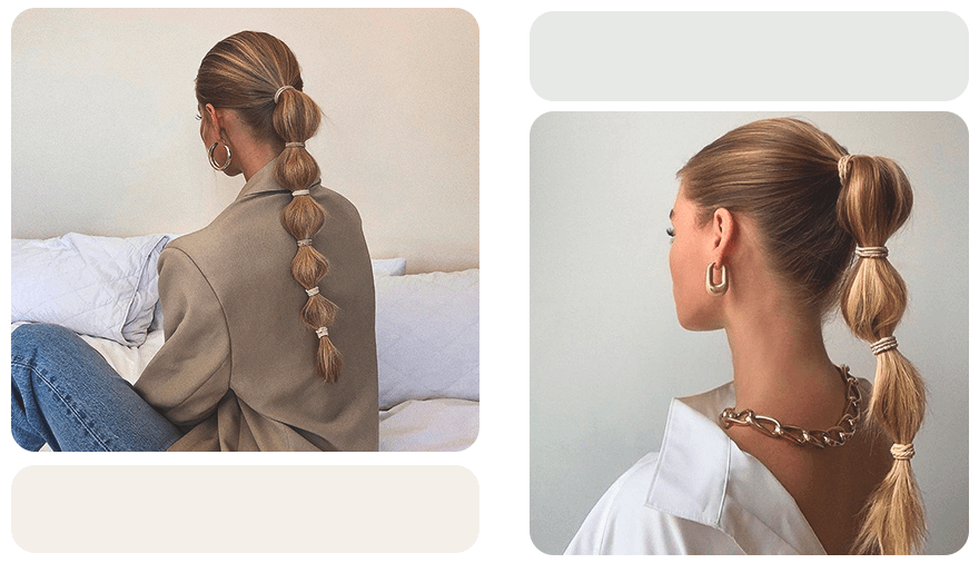 Чтобы сделать прическу, для начала собери либо высокий, либо низкий конский хвост. Затем, каждый раз отступая на равное расстояние, перетягивай волосы маленькими резинками. Не забудь придать прическе немного объема пальцами.