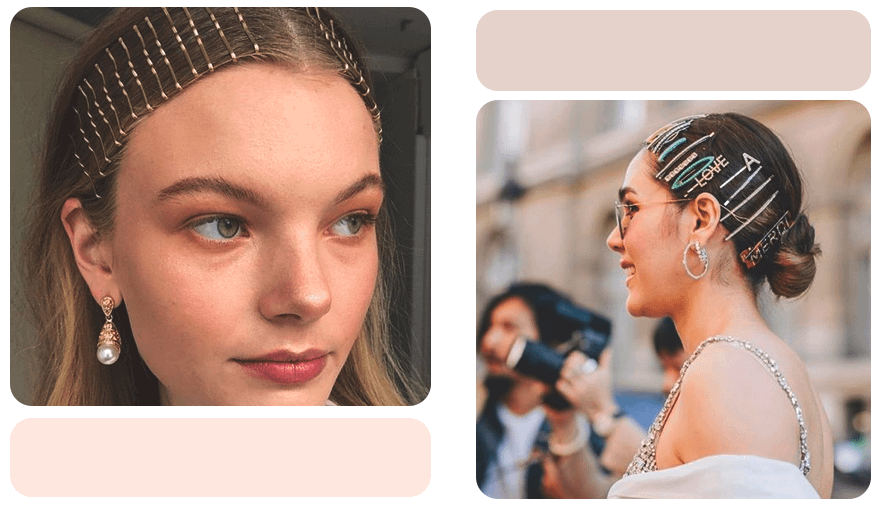 В тренде как базовые тонкие металлические заколки, так и более крупные и объемные модели, украшенные стразами и рисунками. Ими можно заколоть либо распущенные волосы, либо низкий хвост или пучок.