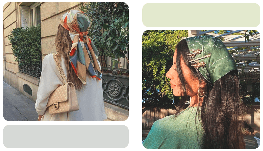 Чтобы спасти волосы от выгорания, а голову от перегрева, используй платок — один из самых простых и стильных аксессуаров, актуальных этим летом.