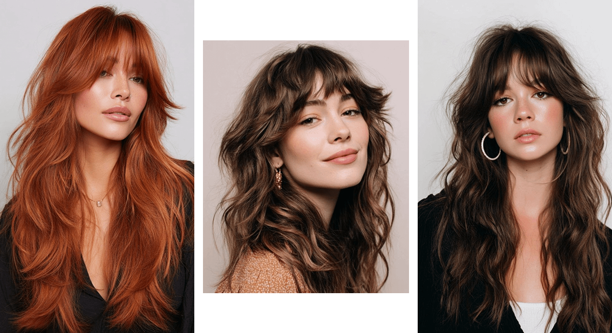 Такая стрижка отлично подходит тем, кто хочет сохранить длину волос, но добавить им объема и движения. Боковая челка визуально вытягивает лицо и смягчает скулы, поэтому особенно хороша для квадратного и круглого типа. При этом легкие слои создают объем даже на тонких волосах. А еще стрижка проста в укладке: достаточно использовать фен и брашинг, чтобы получить мягкие волны и легкий блеск.