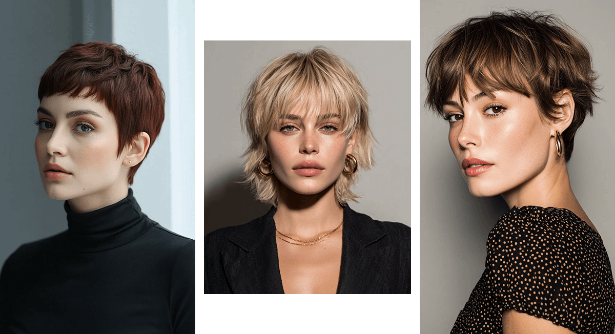Смелая и выразительная стрижка, открывающая черты лица, добавляет образу дерзости и акцентирует внимание на бровях и глазах. Пикси с мини-челкой — идеальный вариант для девушек с правильными пропорциями, высоким лбом и тонкими чертами. Особенно эффектно стрижка смотрится на густых и темных волосах.