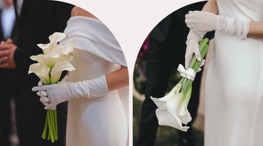 Необычные и элегантные бутоны калл не только красиво выглядят. Они считаются одними из самых выносливых растений. Свадебный букет из белокрыльника идеально дополнит минималистичный образ невесты.
