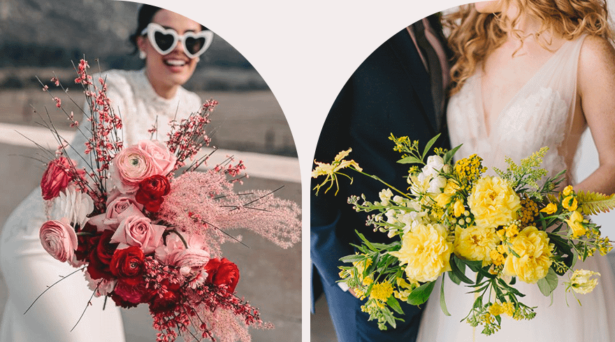 Еще один тренд этого года в свадебной флористике — яркие монохромные букеты. Как правило, собирают их либо в оттенках красного, либо желтого цветов. При этом для композиции используют необычные и крупные, и мелкие цветы.