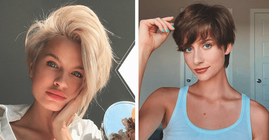 Этот вариант модной стрижки подойдет девушкам с любым типом лица. Пикси с удлиненной челкой благодаря особому объему помогает приблизить форму головы к идеальной овальной и делает образ более благородным.