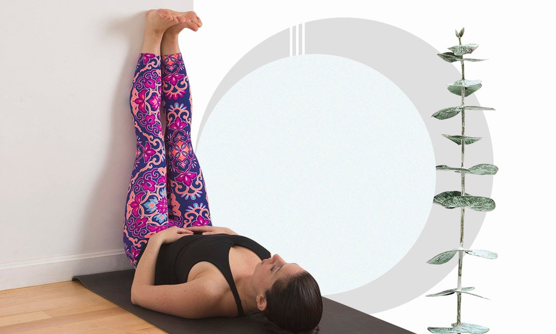 Эту простую позу можно выполнять прямо в кровати: ложись на спину так, чтобы ягодицами касаться стены. Подними ноги вверх и прислони их к стенке так, чтобы пятка плотно лежала на стене. Откинь голову и шею назад. Это упражнение отлично подходит для улучшения кровообращения, растяжки подколенных сухожилий и снижения болей в пояснице.