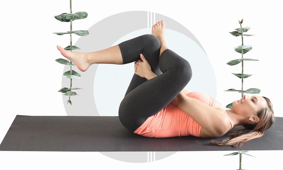 Ложись на спину, согнув колени и поставив ступни на пол. Подними бедра, а затем положи под поясницу небольшую подушку. Затем подними ноги вверх так, чтобы колени находись над бедрами, отрывая поясницу от пола. Когда почувствуешь, что поймала баланс, попробуй поднести колено в груди, вытягивая противоположную ногу и опуская ее на пол. Задержись в этой точке 2-3 минуты прежде, чем опустить все на пол. Если ты сидишь большую часть дня, то оценишь это упражнение — ведь это лучший способ расслабить сгибатели бедра, сокращенные весь день, что позволит уменьшить усталость, накопившуюся в пояснице.