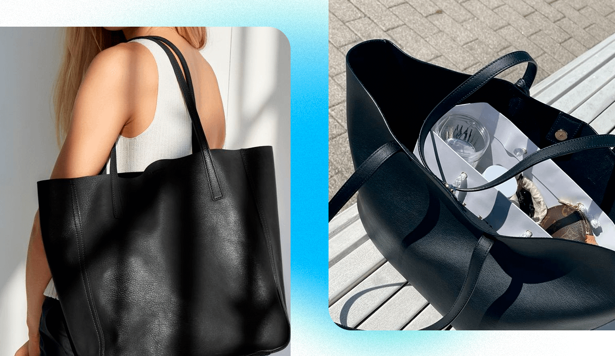 Обрати внимание на тоуты из плотной ткани или тонкого кожзама. Плетеные модели менее универсальны, но тоже идеально подходят для теплого сезона.