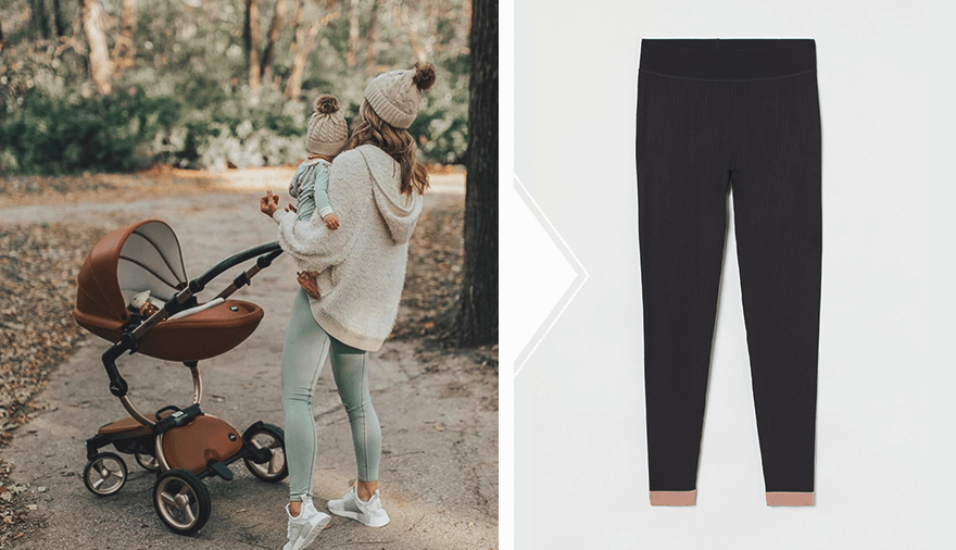 Леггинсы с высокой посадкой дают дополнительную поддержку живота. Поэтому стоит обратить внимание на выбор именно таких моделей. А еще в них комфортно двигаться, что немаловажно для мам.