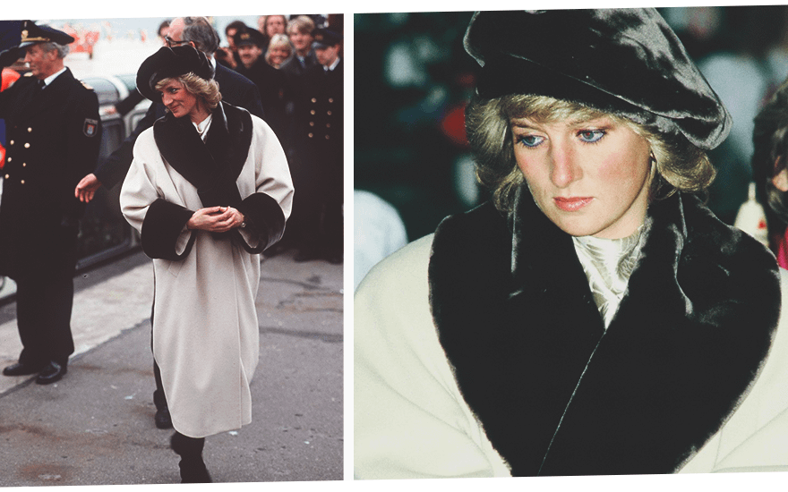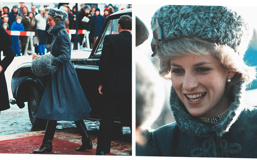 На рождественской службе в Глостершире в 1981 году принцесса Уэльская появилась в по-настоящему зимнем образе. Пальто с поднятым воротником, меховая шапка в казачьем стиле, украшенная элегантным бантом, муфта в тон и высокие сапоги цвета красного дерева.