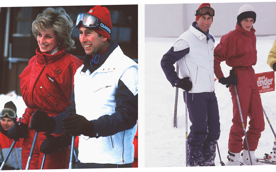 На лыжном отдыхе во время зимних каникул в Лихтенштейне Диана как всегда выделяется на фоне остальных членов королевской семьи непринужденным видом. Яркий стильный приталенный лыжный костюм не особо сочетается с вязаной шапочкой, но так еще забавнее.