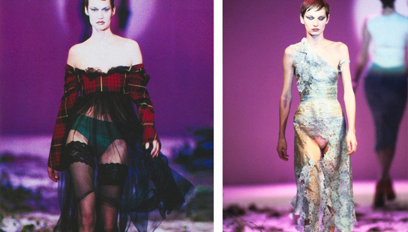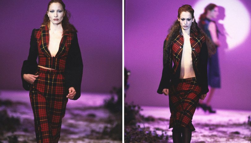 За дебютной коллекцией последовала еще более шокирующая «Изнасилованная Шотландия». Мать Александра долго изучала генеалогическое древо семьи и обнаружила, что их фамилия образована от названия шотландского клана, который пережил атаку англичан. Маккуин, умевший находить вдохновение в самых темных уголках человеческого начала, переложил историю на идею для линейки.