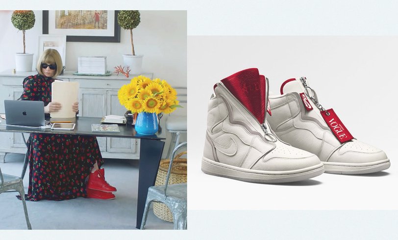 Ограниченный тираж кроссовок Jordan создан при участии главного редактора американского издания Vogue Анны Винтур. Кроссовки выполнены в фирменном красном оттенке Vogue и отделаны твидом. Всего доступно четыре разных дизайна, каждый из которых вдохновлен популярными моделями Air Jordan 1 и Air Jordan 3.