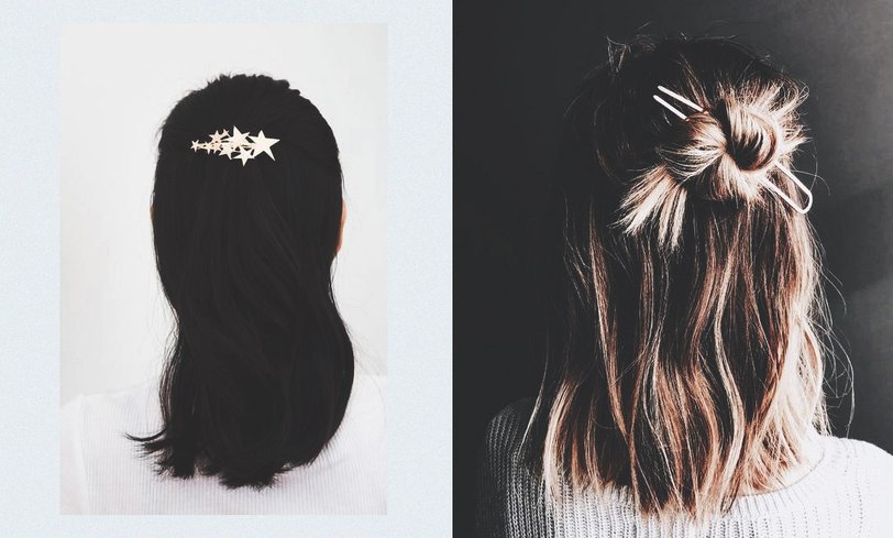 Большинство минималистичных заколок олицетворяют геометрию. Треугольники, круги, кристаллы, сердца и звезды. Некоторые похожи на причудливо изогнутую проволоку. Каждая смотрится так, будто ты взяла что-то первое попавшееся под руку и закрепила в волосы – а вышло безумно красиво.