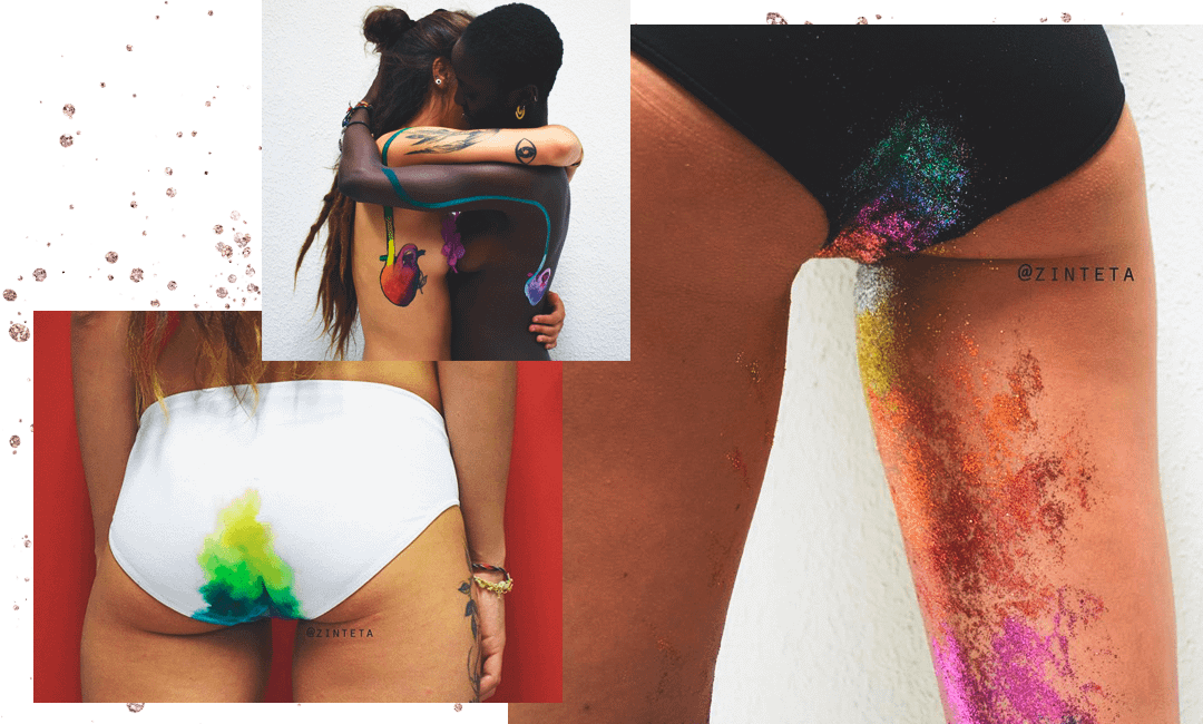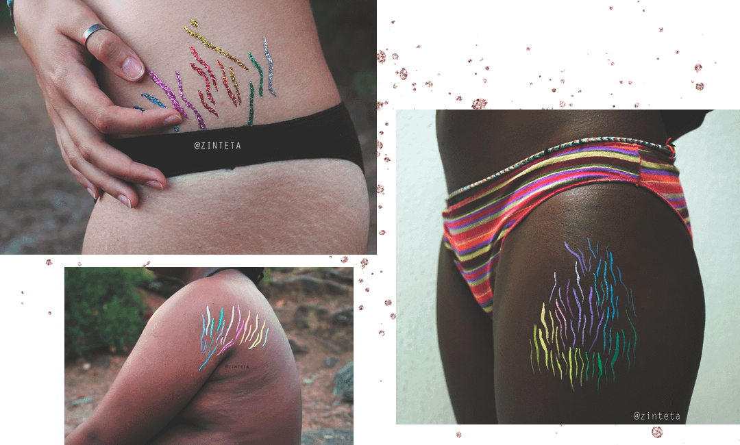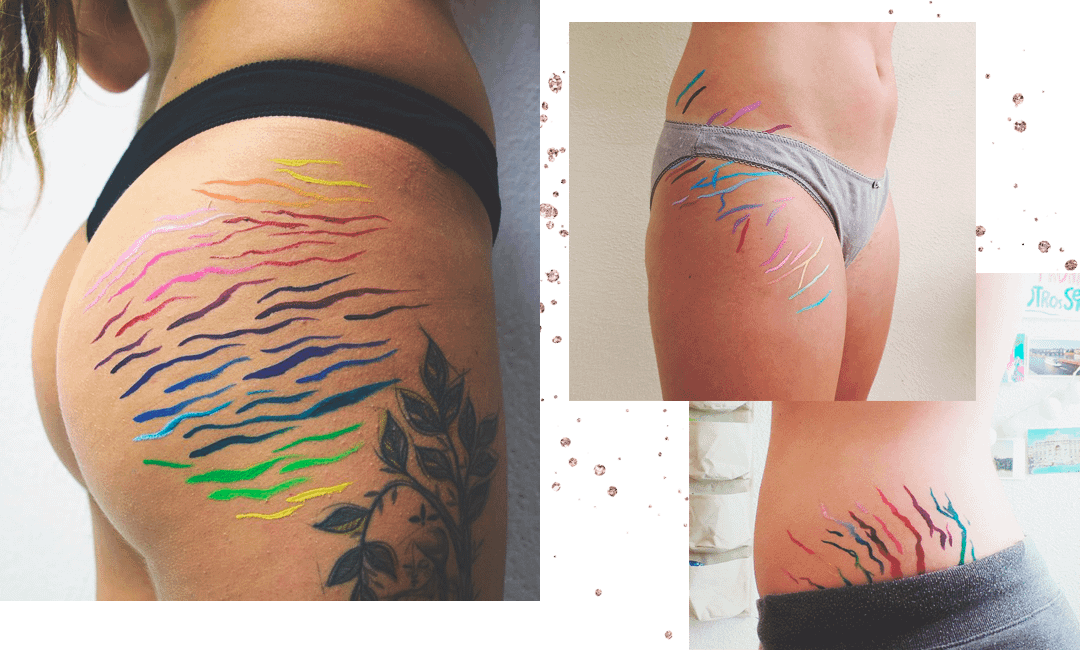 Растяжки, шрамы и менструация — вещи, за которые женщинам до сих пор стыдно. Художница Синта Торт Картро из Барселоны превращает недостатки в новые способы оценить красоту женского тела, рисуя радугу на несовершенствах.