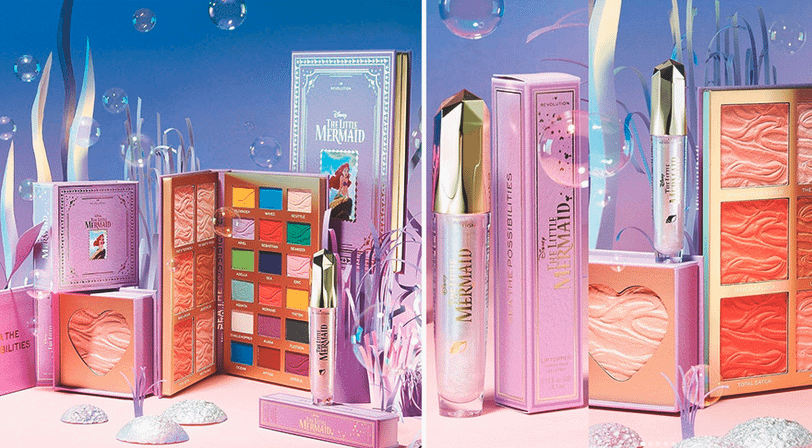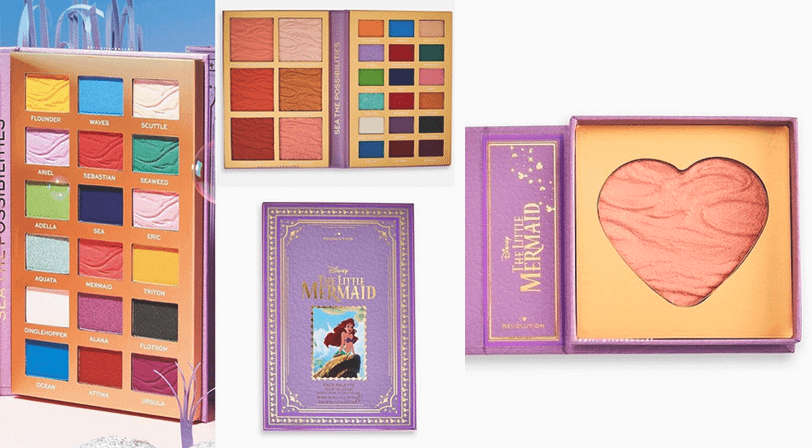 В линейку вошли три бьюти-продукта. Первый — палетка теней из восемнадцати ярких оттенков. Среди них есть цвета, посвященные персонажам известной истории: ярко-желтый «Флаундер», коралловый «Себастьян», нежно-розовый «Эрик», лавандовый «Ариэль», фуксия «Урсула» и шафрановый «Тритон». В этой же палетке находятся шесть мерцающих розово-персиковых оттенков, которые можно использовать в качестве румян. Вторым продуктом оказался моно-хайлайтер песочного цвета. Завершает коллекцию прозрачный светло-розовый блеск для губ.
