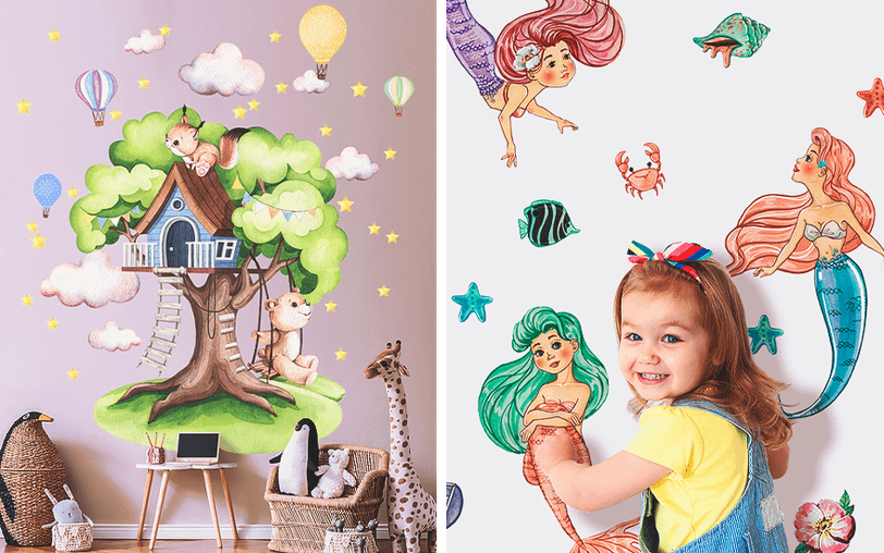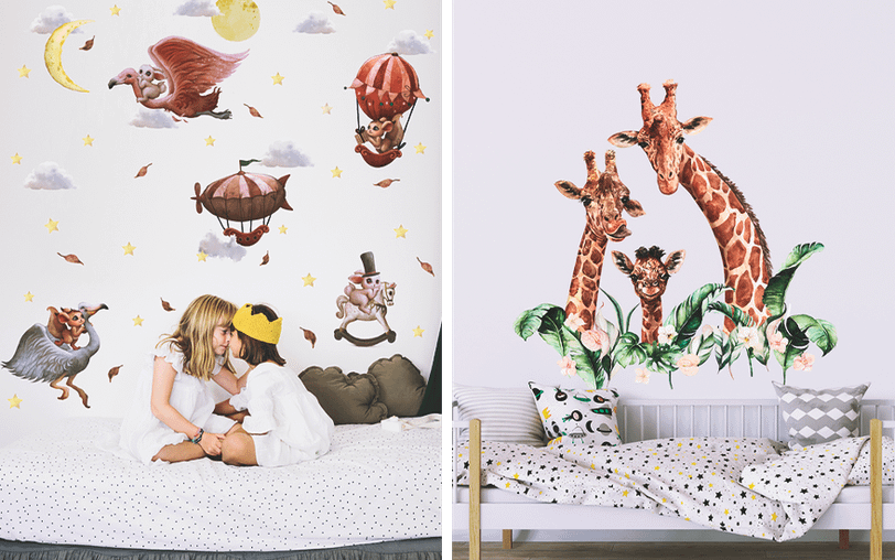 Еще одним интересным способом украсить однотонную стену в доме являются виниловые наклейки. Достаточно сделать в комнате одну акцентную стену, украсив ее динозаврами, малышами-единорогами, сказочными фламинго, космическими кораблями, акварельной картой мира, россыпью золотых или серебряных звезд. Плюс в том, что они сразу готовы к работе — нужно лишь выбрать подходящую стену, дверь или даже окно. Дело займет всего пару минут. Такой простой и эффектный дизайнерский прием позволит персонифицировать пространство, придать ему художественный вид, сделать визуально уютнее и привлекательнее. Кроме того, виниловые наклейки не боятся влажности и не теряют цвет под воздействием прямых солнечных лучей, а значит будут радовать тебя и ребенка долгие годы.