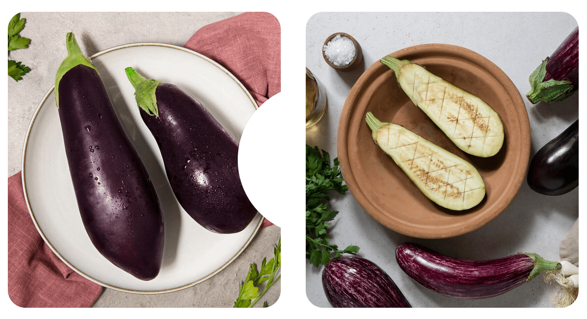 Вымой баклажаны и прорежь кожуру в нескольких местах. Затем отправь в духовку, разогретую до 200 °C, на 25–30 минут. После запекания остуди баклажаны и очисти от кожицы.