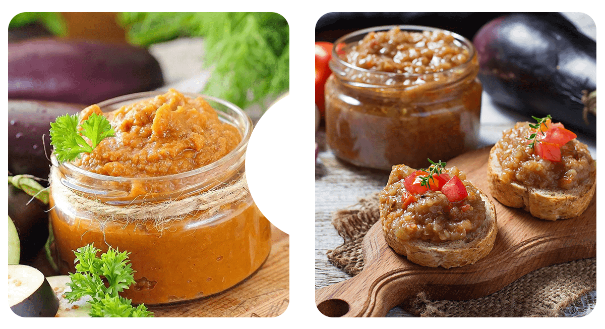 Нарежь или поруби запеченные баклажаны и добавь их к овощам на сковороде. Туши на среднем огне 5–7 минут, регулярно помешивая. Слегка остуди массу и измельчи ее в блендере до однородной консистенции. Добавь соль, перец, по желанию немного уксуса и перемешай.