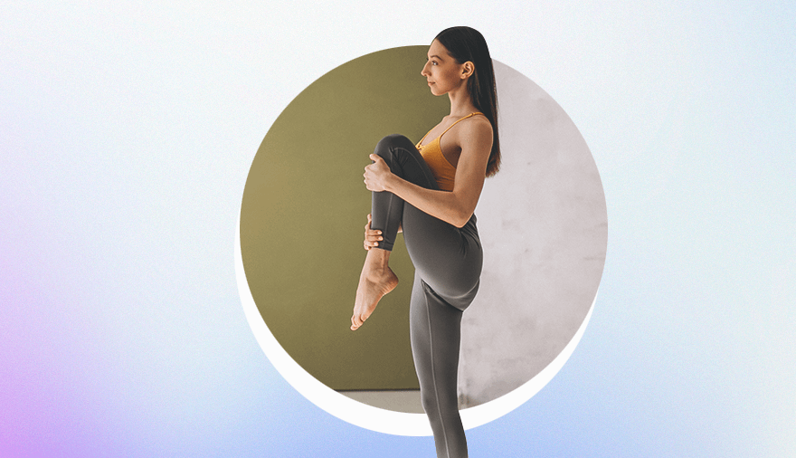 Встань на одну ногу, а другую подними так, чтобы колено находилось на уровне бедра. Первые тренировки должны занимать около пяти секунд, а потом время нужно постепенно увеличивать.