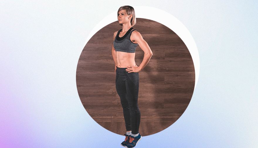 Исходное положение стоя, руки на бедрах. На вдохе поднимись на носки и сохраняй положение в течение 5-10 секунд. Затем вернись в исходное положение и выполни упражнение еще 10 раз.