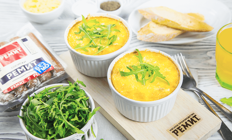 Пикантный соус маринара, свежая руккола и вкусные сосиски «РЕМИТ» под нежной сырной корочкой в индивидуальной кокотнице — идеальный пример «домашнего» аутентичного блюда. Порадуйте им своих близких.