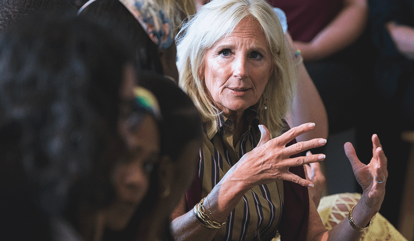 Прошлые предвыборные кампании и два срока в качестве второй леди — впечатляющий бэкграунд для новой первой леди. Все годы политической карьеры Байдена Джилл активно поддерживает его, участвует в агитации, встречается с избирателями, присутствует на официальных церемониях.