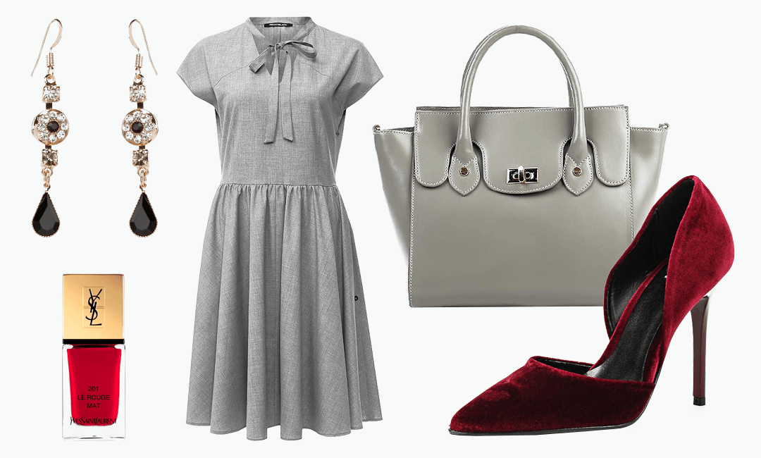 Красная обувь может быть как нарядной, так и повседневной, а главное, она может сделать особенным даже самый простой наряд. Если использовать красные туфли как сексуальный акцент, необходимо оставаться сдержанной в остальном. Деловое серое платье романтического кроя, практичная сумка и бархатные туфли на высоких шпильках — еще одно прекрасное решение для романтического свидания.
