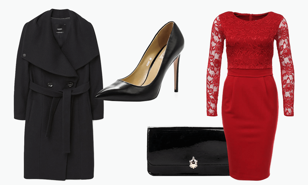 Нет ничего более сексуального, чем сдержанное красное платье. Такой наряд может стать идеальным решением для праздничного гардероба, так как сочетает в себе женственность, романтичность и, конечно же, прекрасно воплощает идею использовать красный цвет как символ Дня всех влюбленных. В сочетании с классическими туфлями на шпильках, черной верхней одеждой и неброским клатчем, вы получаете прекрасный лук для романтического свидания или даже вечеринки.